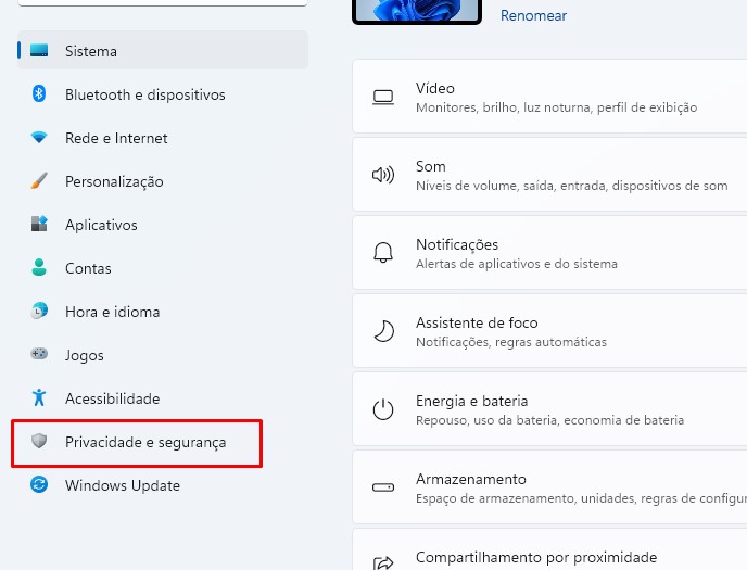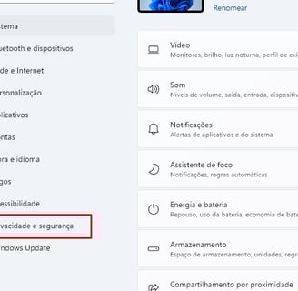 Selecione Privacidade e Segurança (no Windows 11) ou Privacidade (no Windows 10).