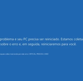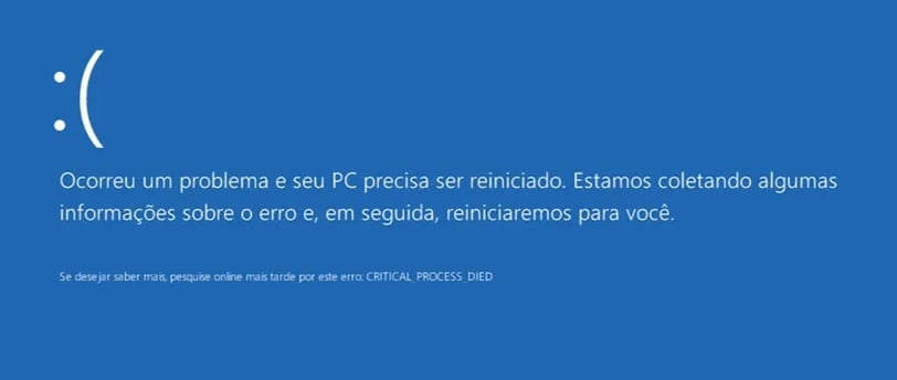 Quando isso acontece, o Windows "desliga" para evitar danos maiores. A tela exibe um código de erro (como "CRITICAL_PROCESS_DIED" ou "IRQL_NOT_LESS_OR_EQUAL"), um QR code e uma mensagem dizendo que o dispositivo "encontrou um problema e precisa ser reiniciado".