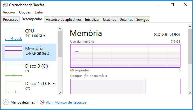 No Gerenciador de Tarefas, observe se o uso de memória de um programa específico continua aumentando sem motivo.