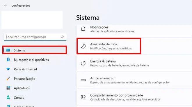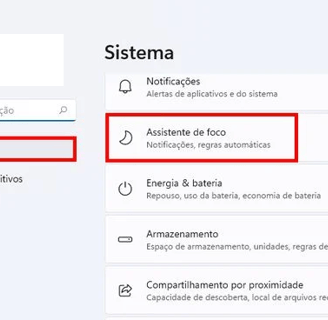 Acesse Configurações > Sistema > Assistente de Concentração.